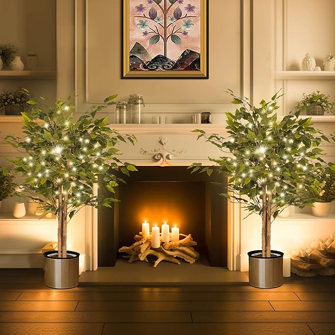 Изкуствен фикус бенджамин – NEUTYPECHIC – с лед светлини – комплект 2бр – три размера