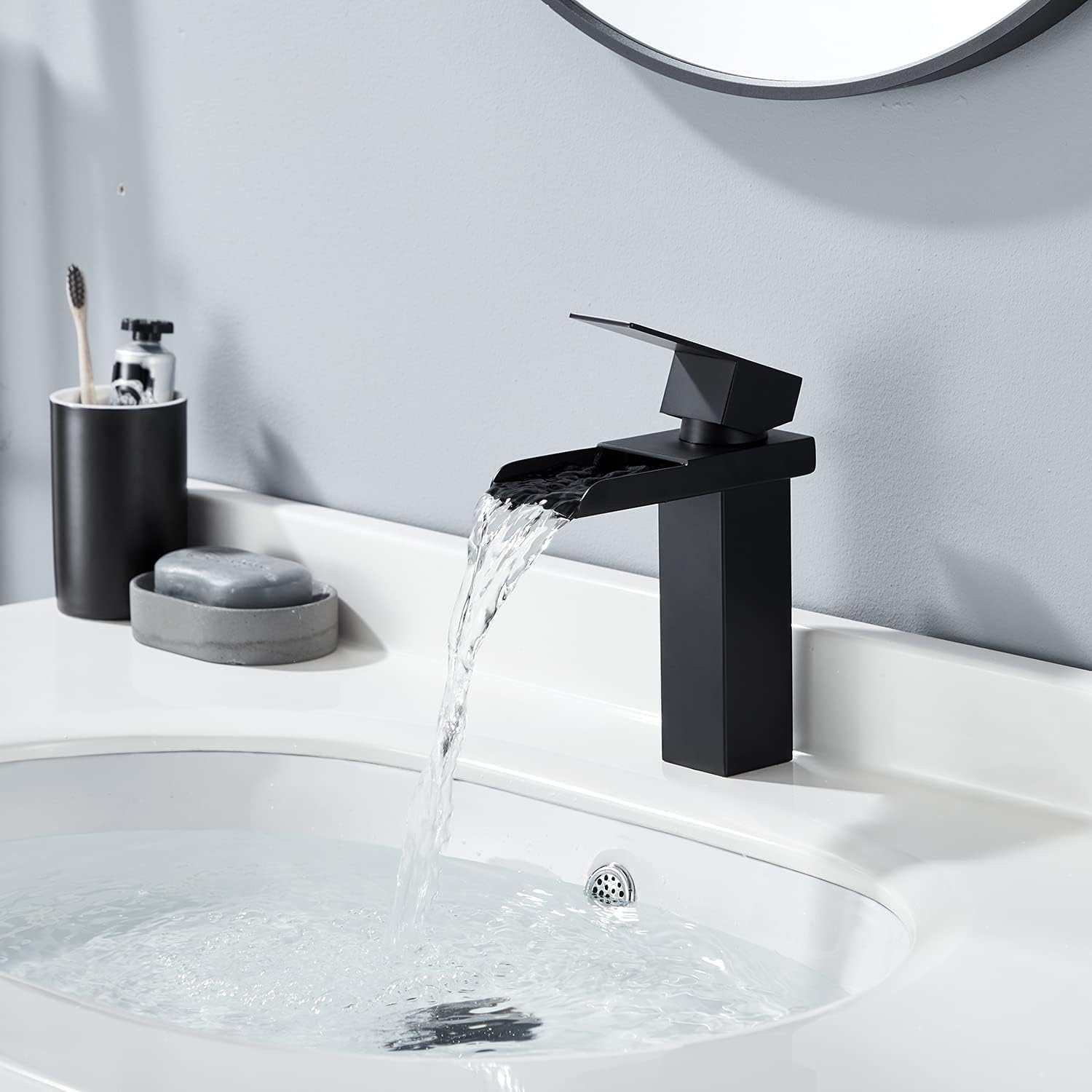 Смесителят е проектиран по принципа на водопадния поток – водата се насочва през специален канал и изтича плавно и тихо, без пръски.